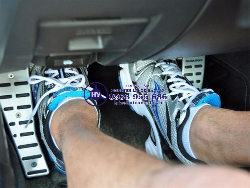 Tài xế mới luôn phải nhớ trong đầu, bất cứ khi nào không ga, phải chuyển sang để lên chân thắng, khi cần thiết sẽ đạp thắng được ngay. Thói quen này nên tập bằng cách đặt cố định gót chân phải, xoay kiểu chữ V di động giữa hai bàn đạp thắng và ga.