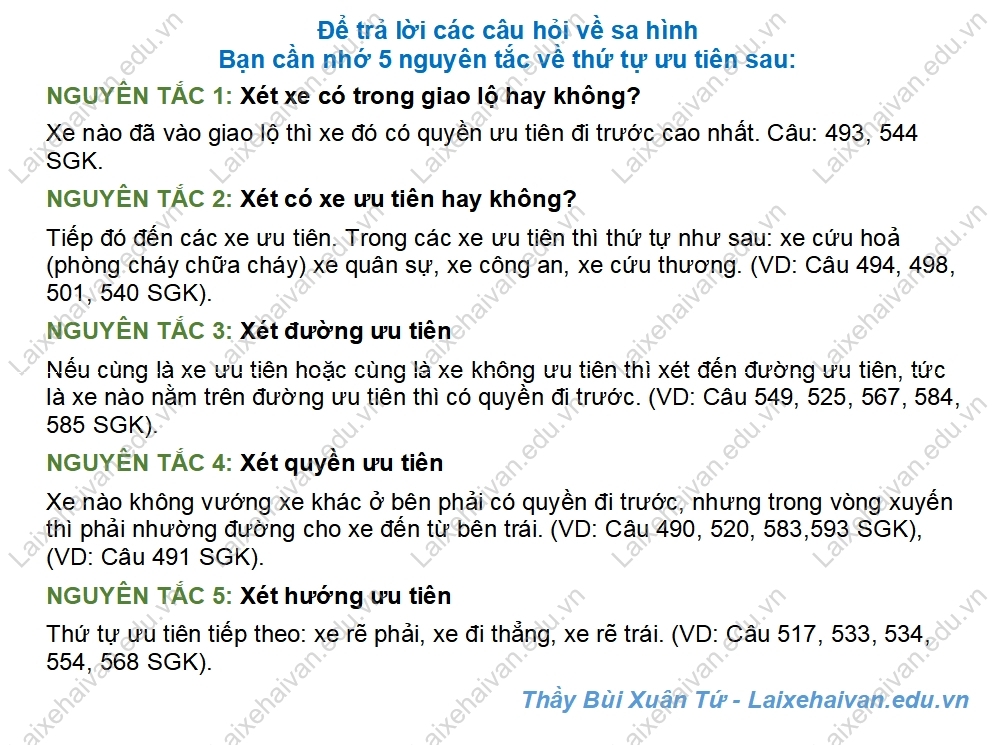 Vì vậy, để trả lời các câu hỏi về sa hình, bạn cần nhớ 5 nguyên tắc về thứ tự ưu tiên sau: