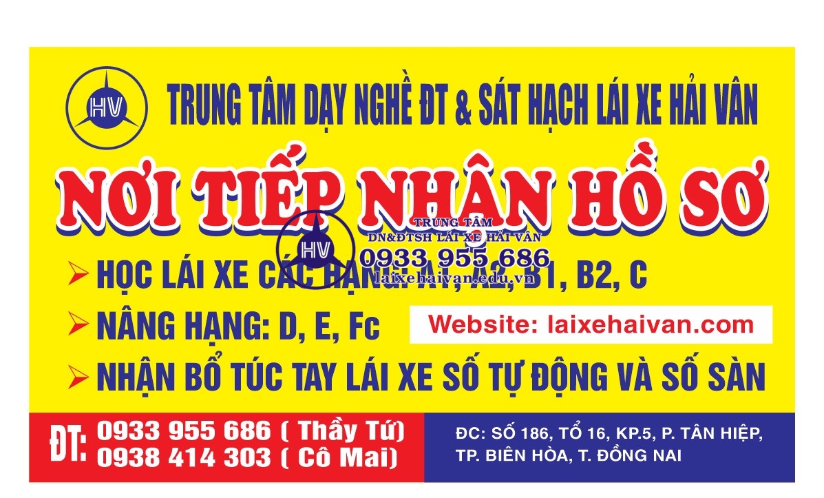 Nơi tiếp nhận hồ sơ: C225, Tổ 16, KP 5, P. Tân Hiệp, TP. Biên Hòa, Tỉnh Đồng Nai.