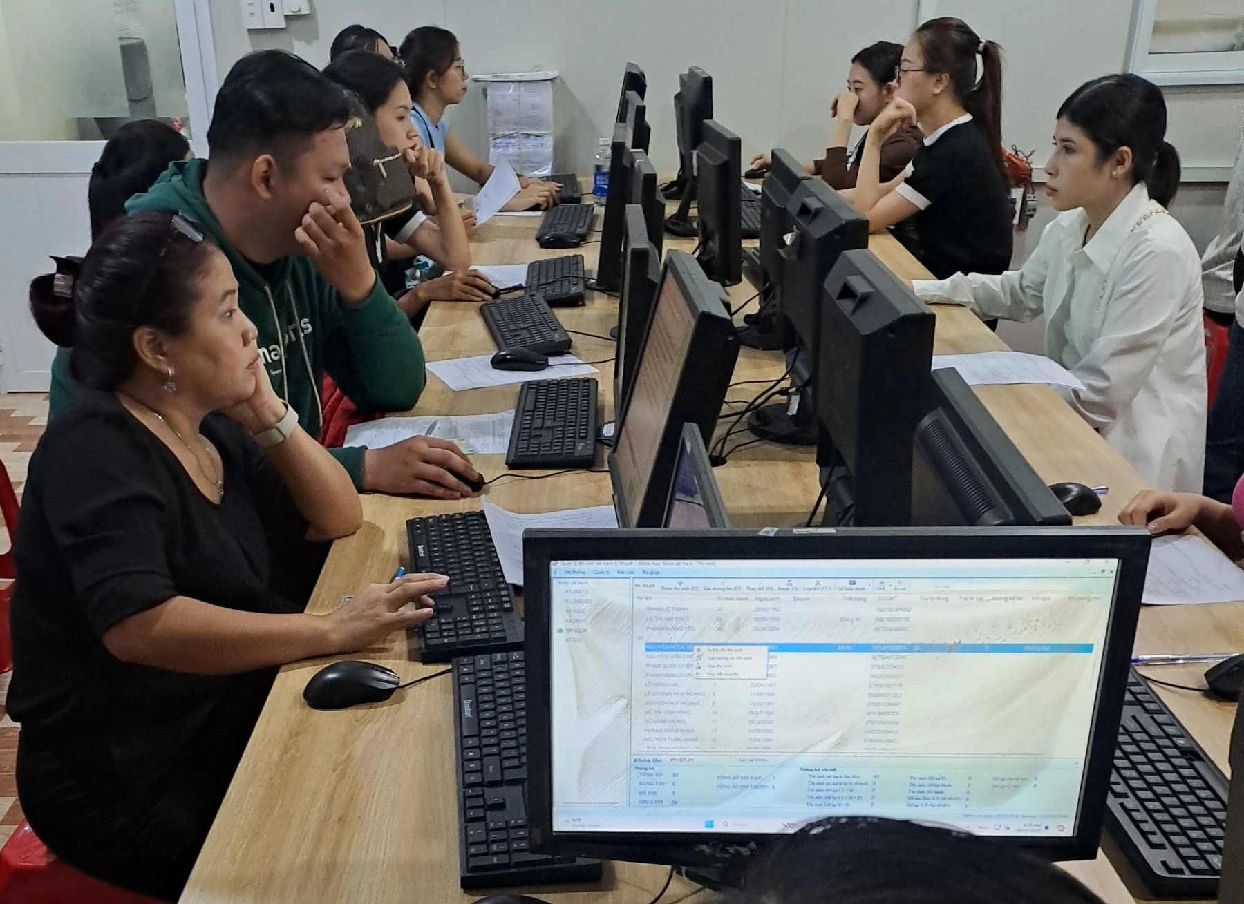 Học viên điền thông tin trước khi thi tốt nghiệp tại một cơ sở đào tạo vào tháng 5.2024 – THANH NAM